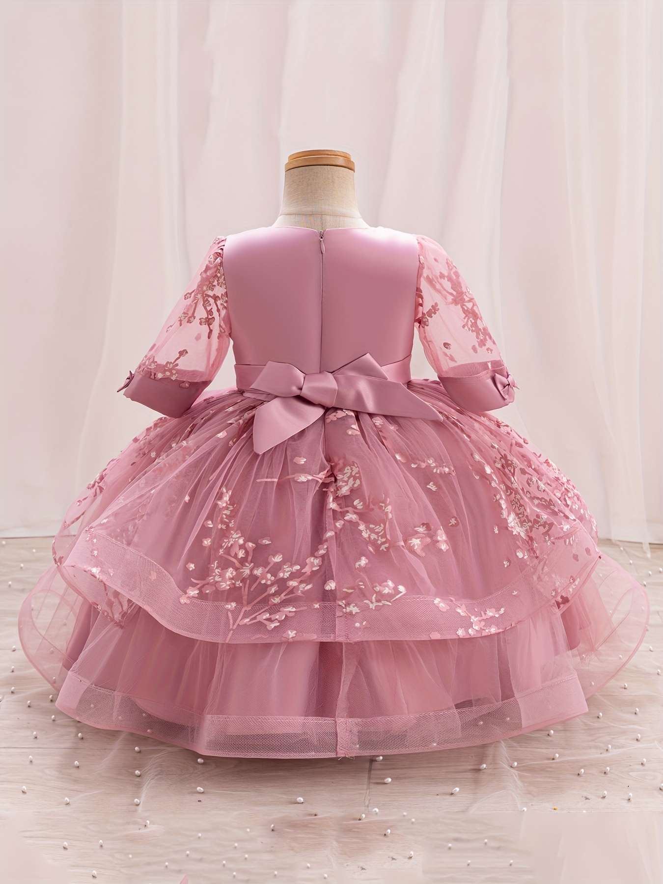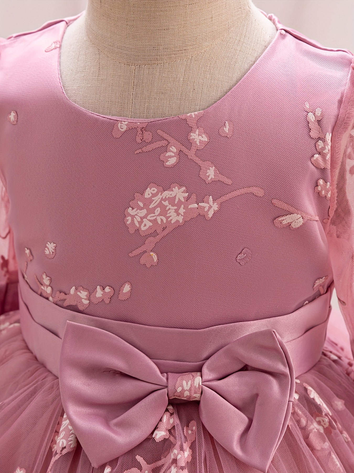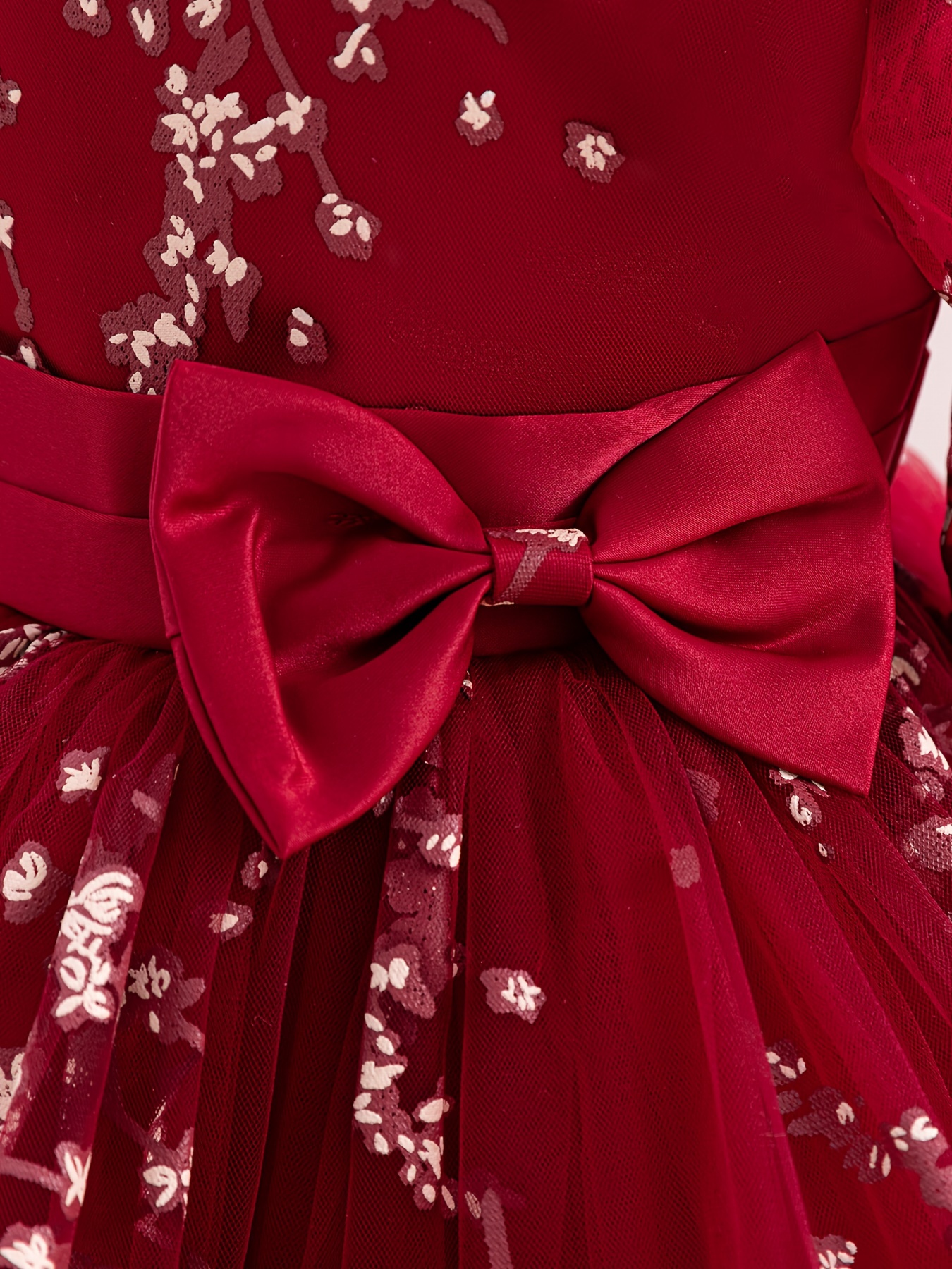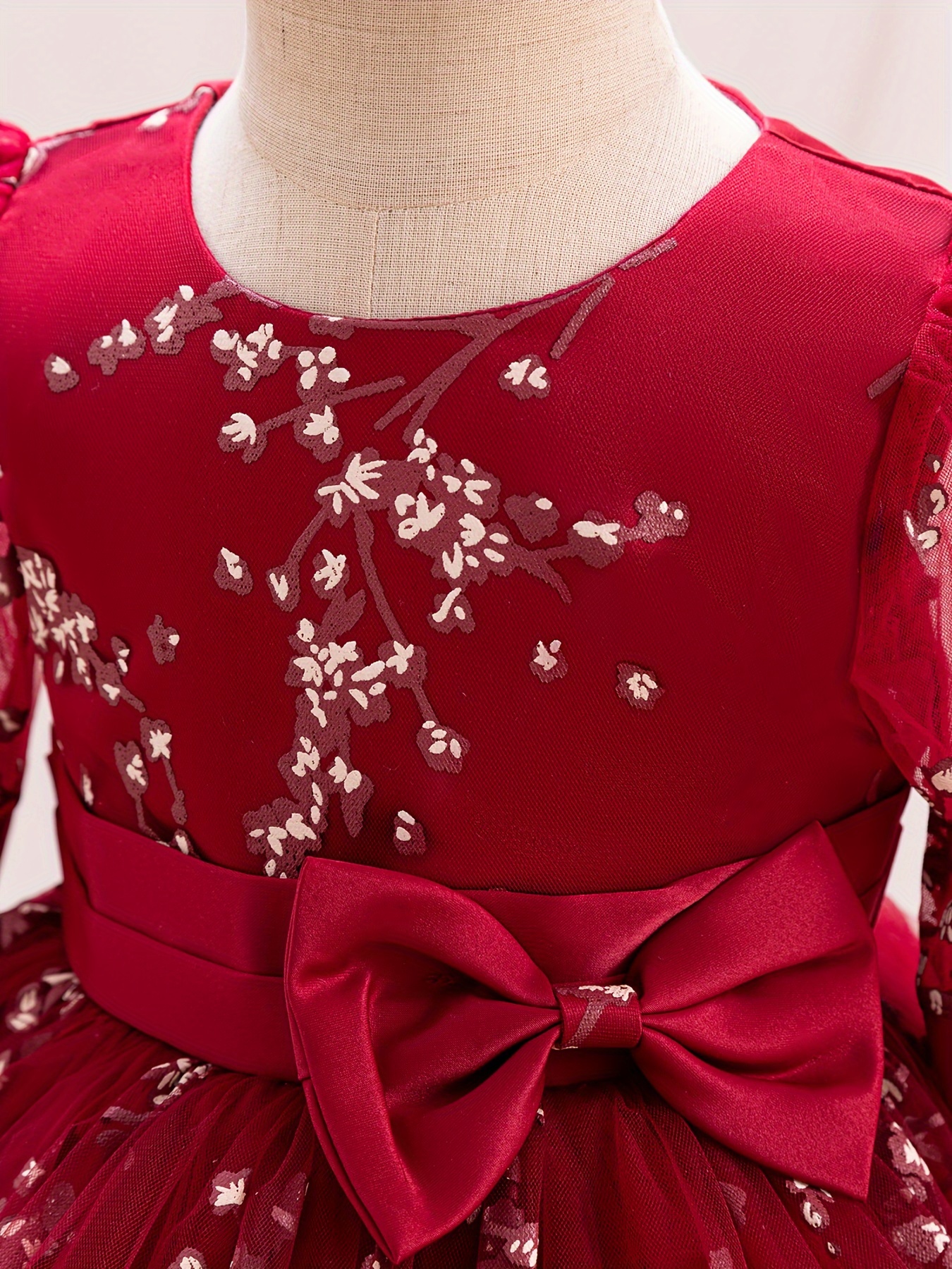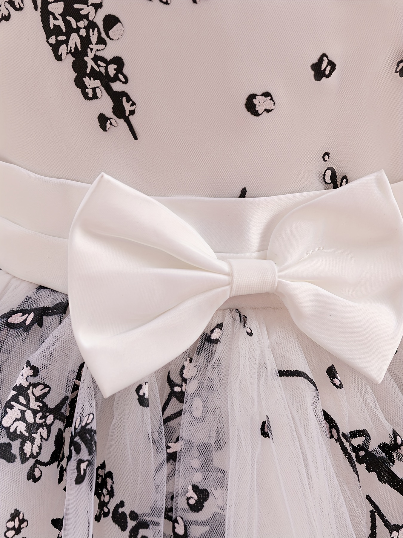 Girls' Summer New Puff Sleeve High-End Dress with Bow, Elegant Princess Dress, Christmas Dress, Christmas Gift