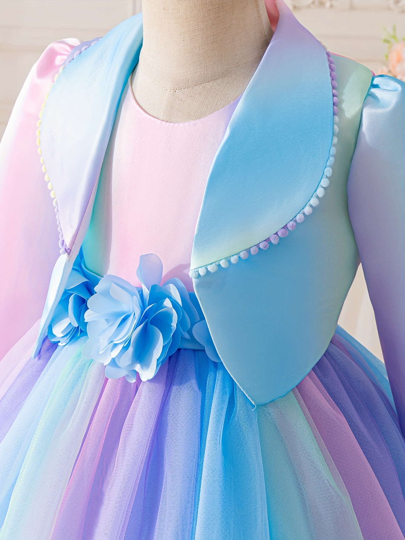 Girl's Autumn New Arrival Dress Set, Novelty Jacket for Special Occasions, Colorful Dress with Turn- Collar and Fringe, Versatile Top for Spring/Autumn, Party, Dance, Carnival, Festival, Concert, Stylish Handmade 3D Flower Ra