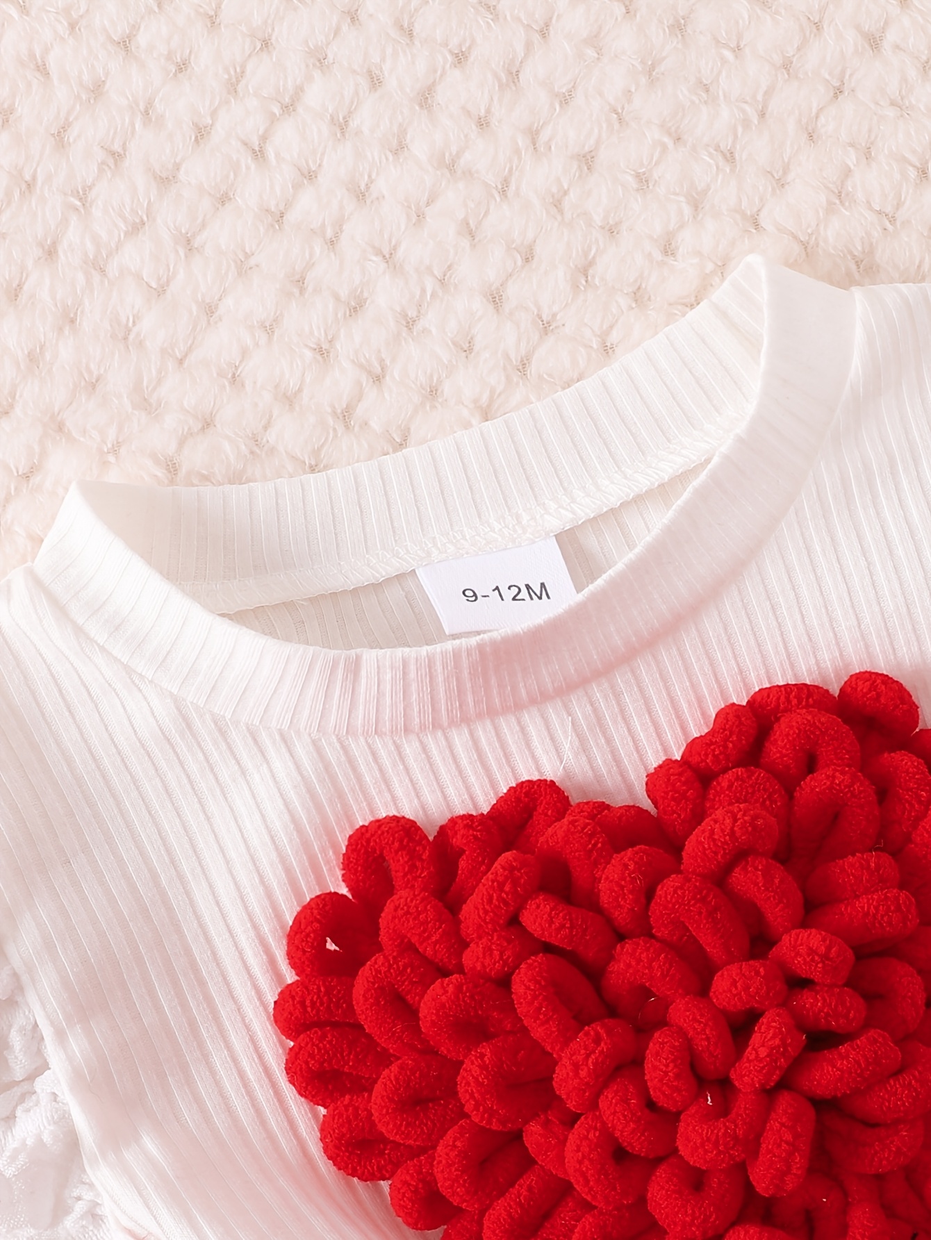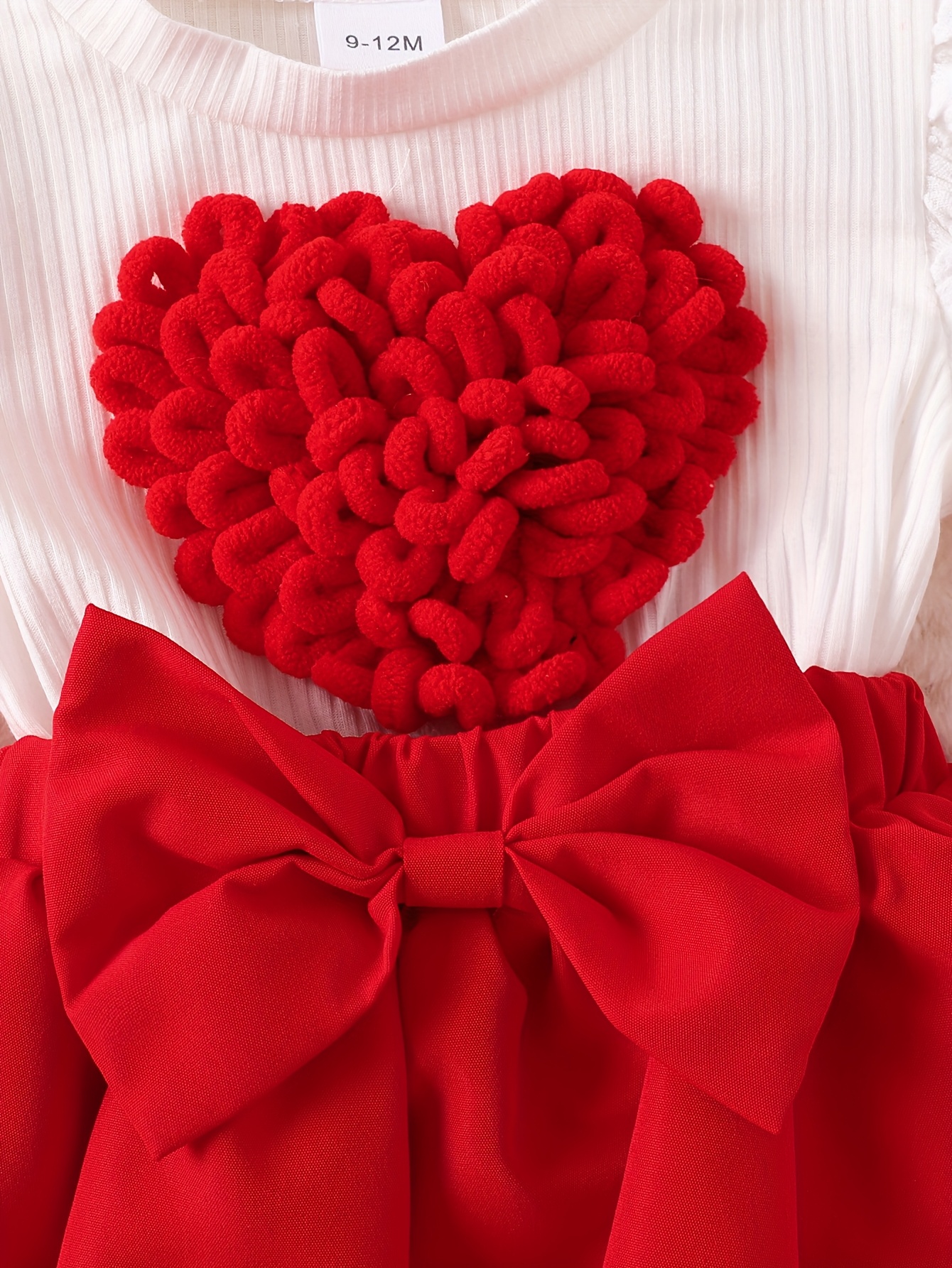 Girls' Sweet Princess Style 3pcs Set with Heart & Bow Detail - Soft Pink & Red Ruffled Sleeves, Bodysuit with Red Bow Skirt & Matching Headband, for Outdoor, Princess Dress For Girls, Princess Dress For Girl