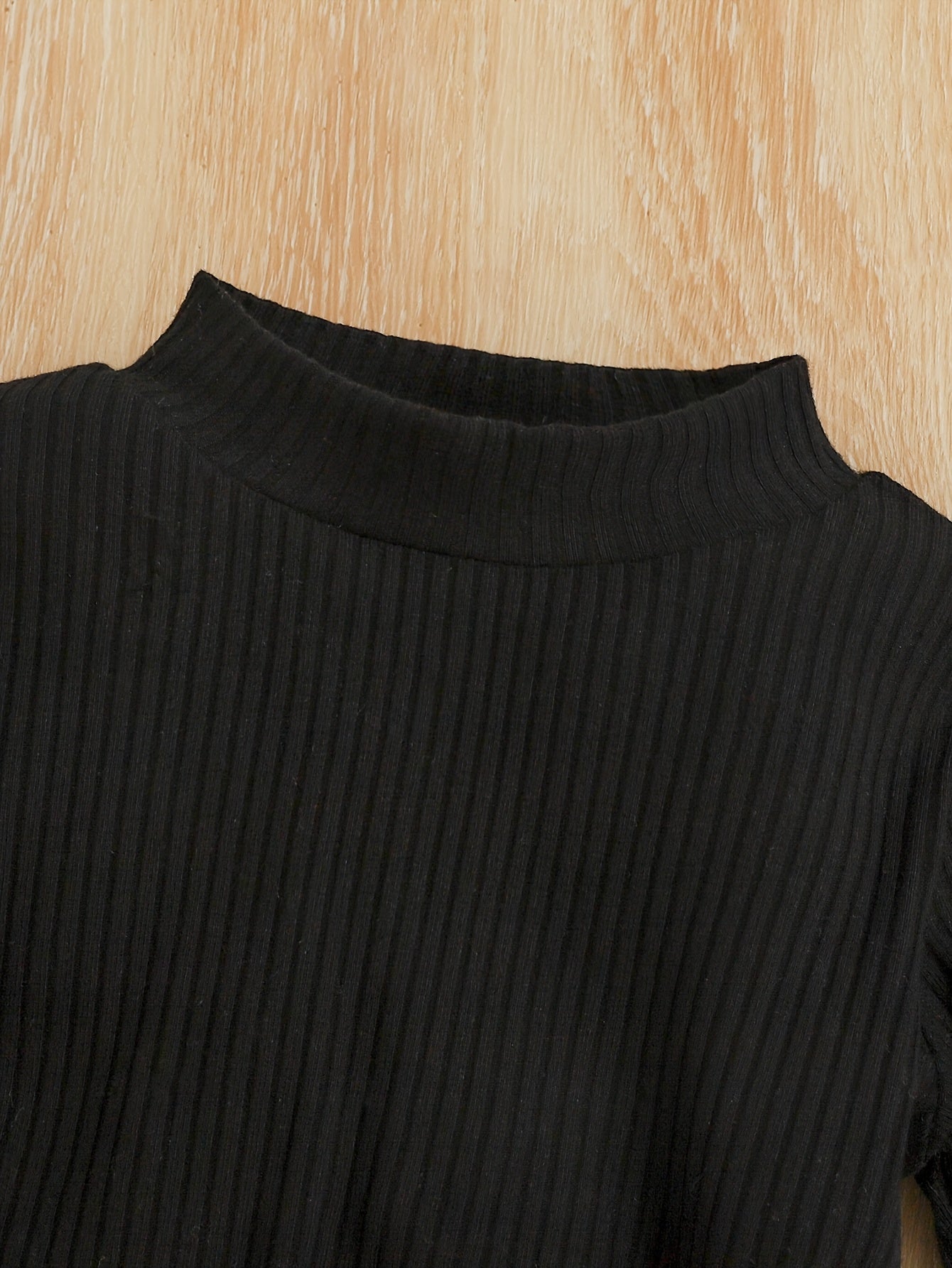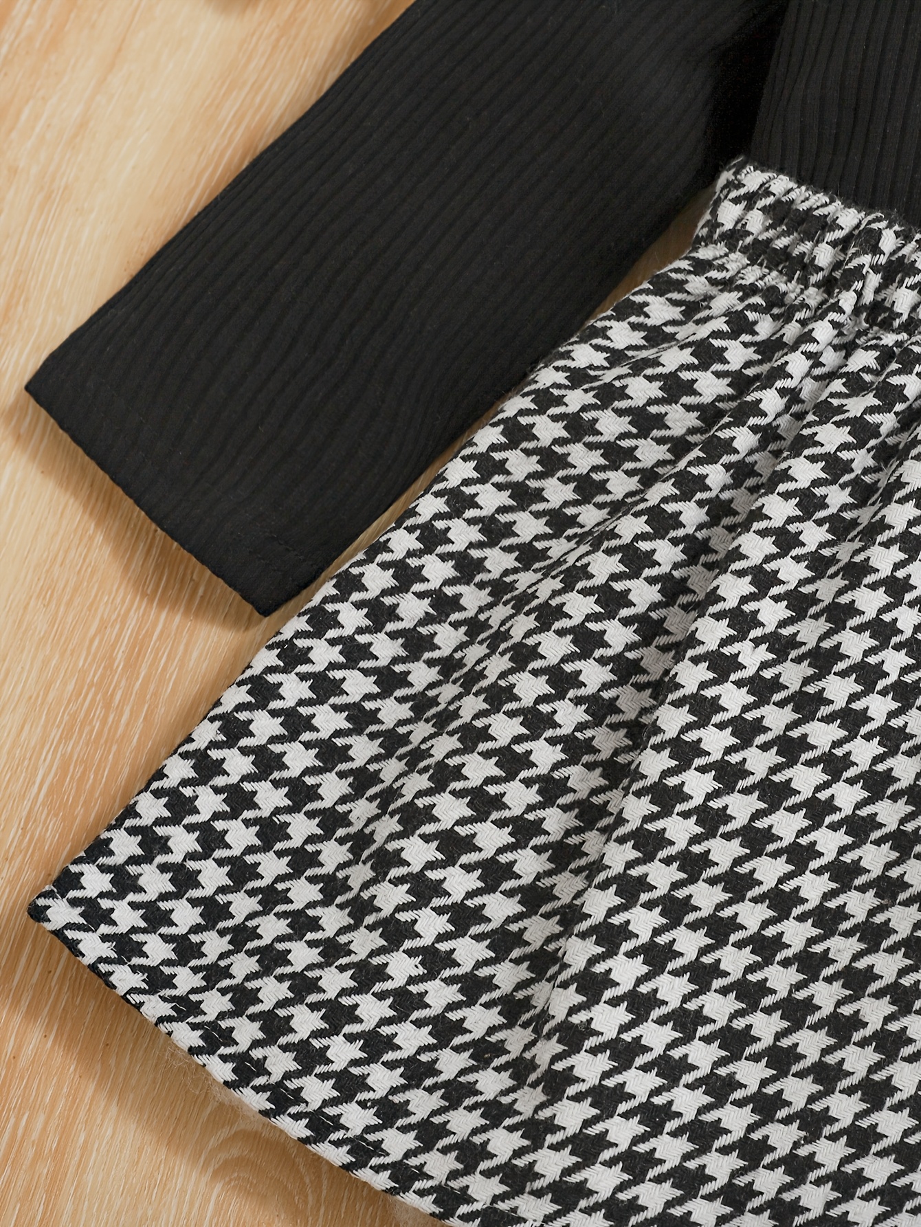 Girls' Three-Piece Set Ribbed Mid-Calf Long Sleeve Top + Houndstooth Skirt + Beret Hat, Perfect for Outdoor