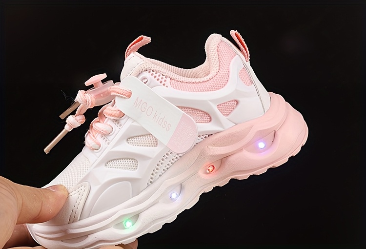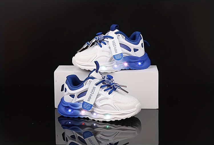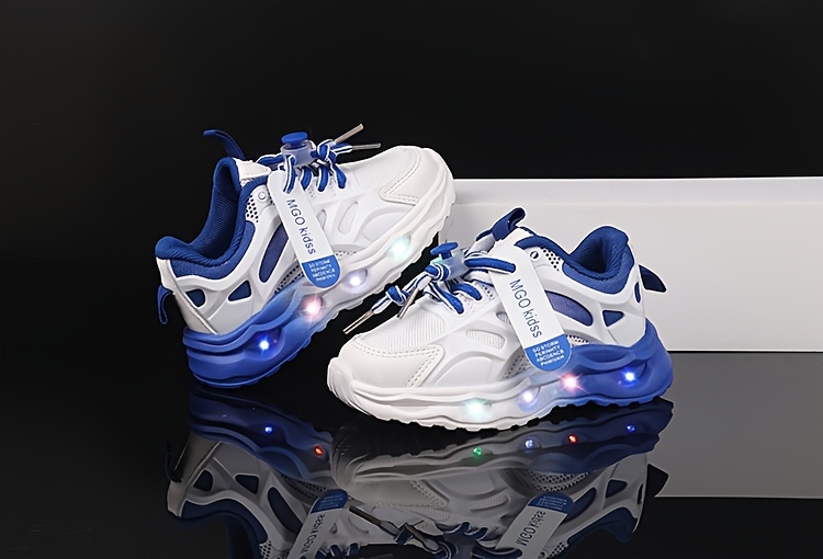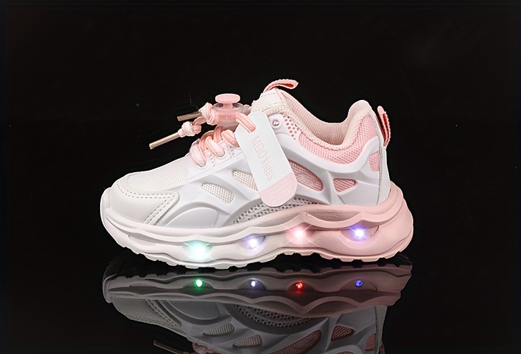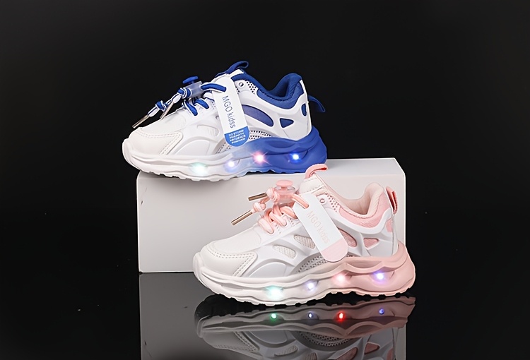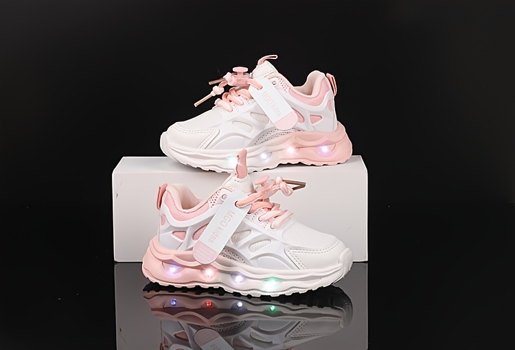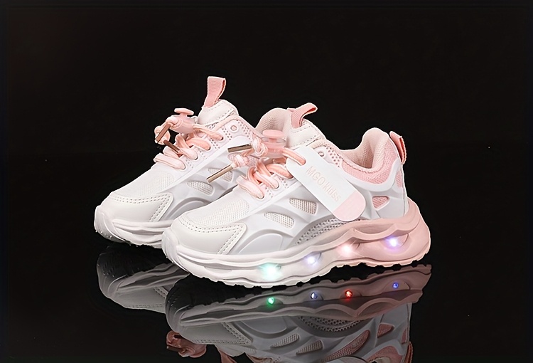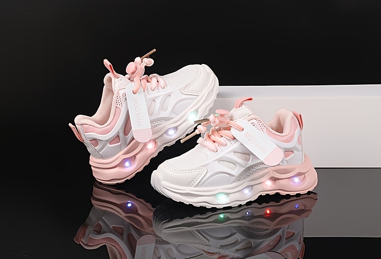 Kids' LED Light-Up Sneakers with Glow-in-the-Dark Soles - Boys & Girls Low-Top Walking Shoes (1-6 Years) - PU Upper &, Multicolor (White/Pink/Blue) for Nighttime & Play - Party Shoes
