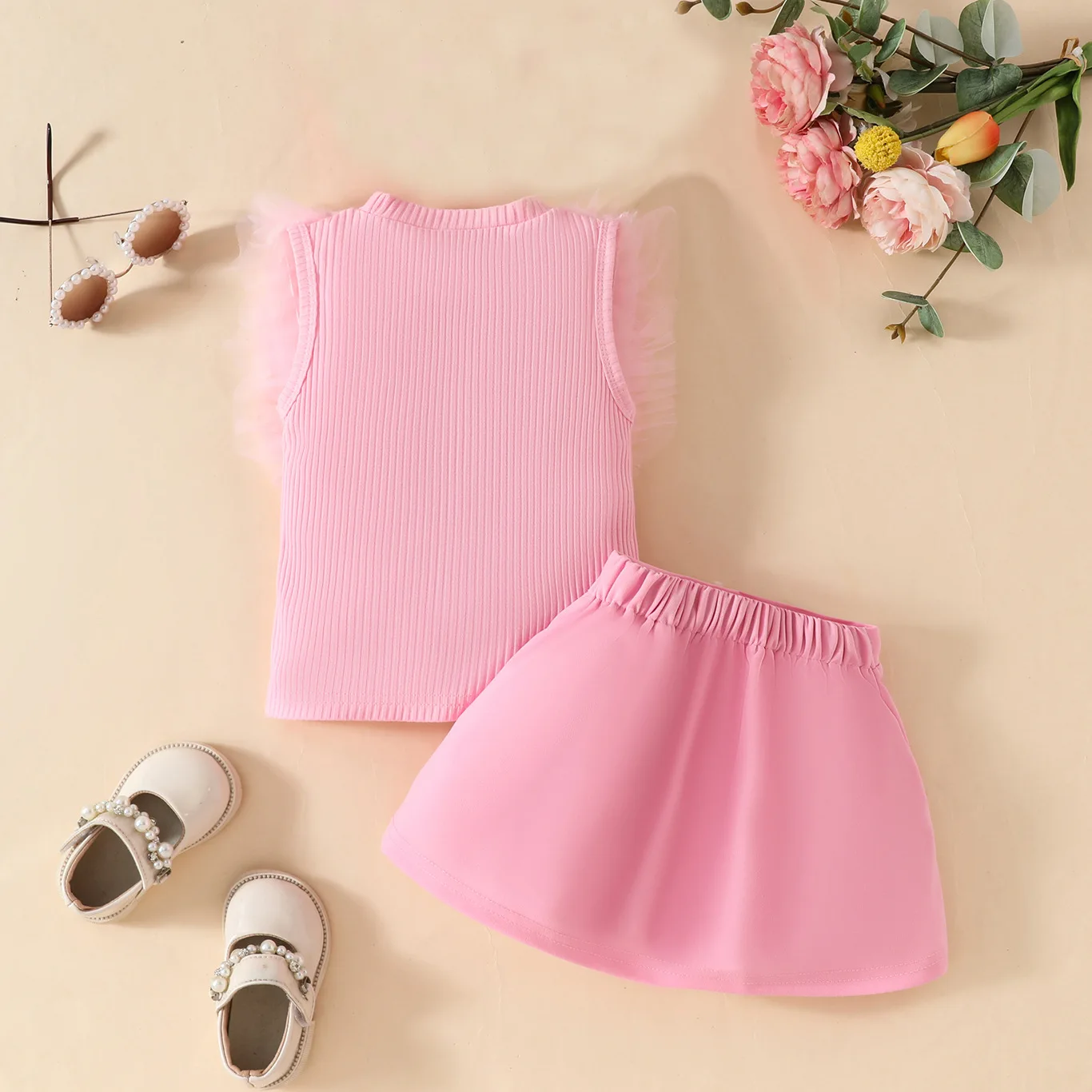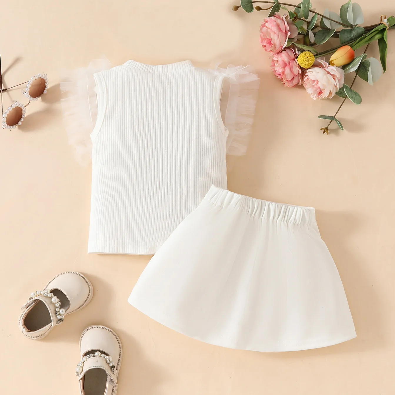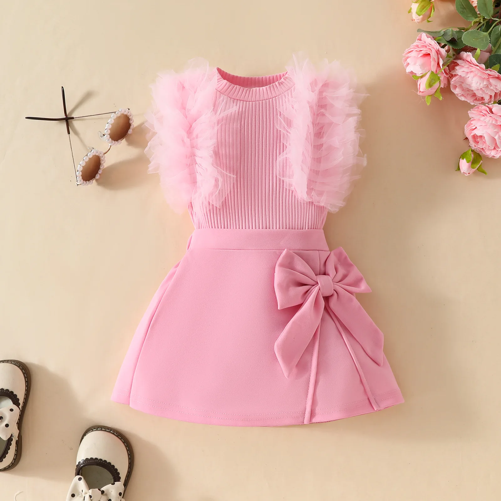 0-3Y Baby Girls Clothes Set 2025 Summer Toddler Outfit Sleeveless Mesh Top+Bow Skirt+Beret 3Pcs Set Cute Infant T-shirt Suit