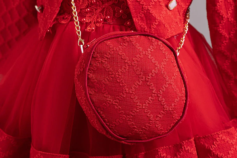 Autumn Fashion 2 Sets Long Sleeve Beading Girls Dress