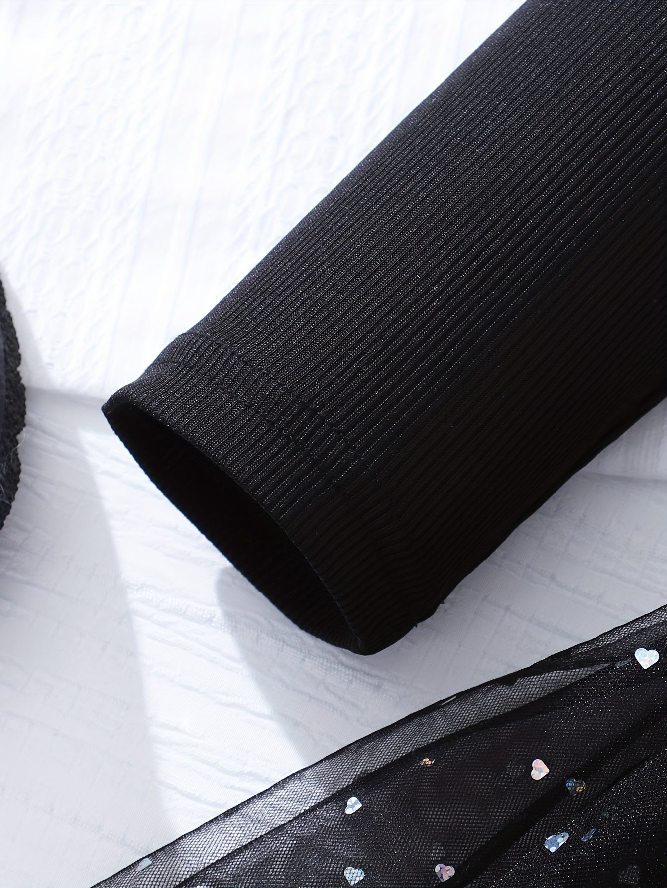 Girls' Casual Fashion Long Sleeve & Mesh Skirt Set for Spring, Autumn, and Winter