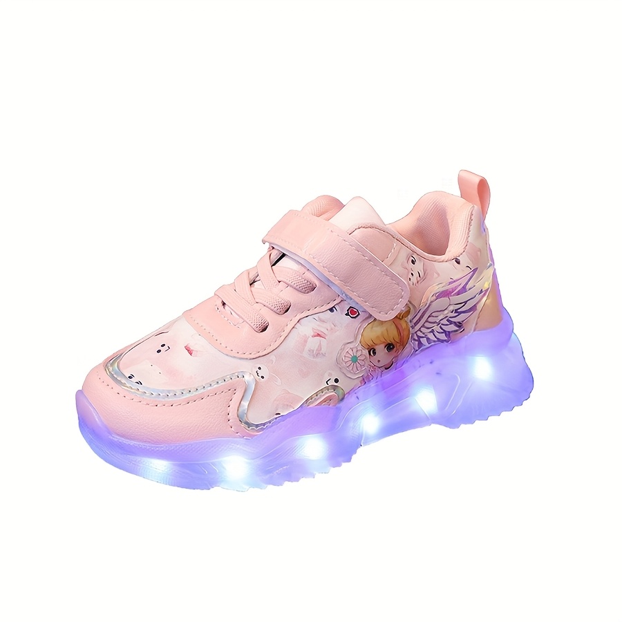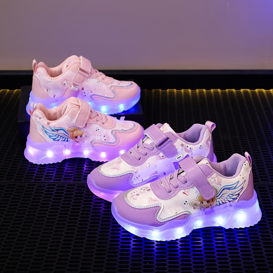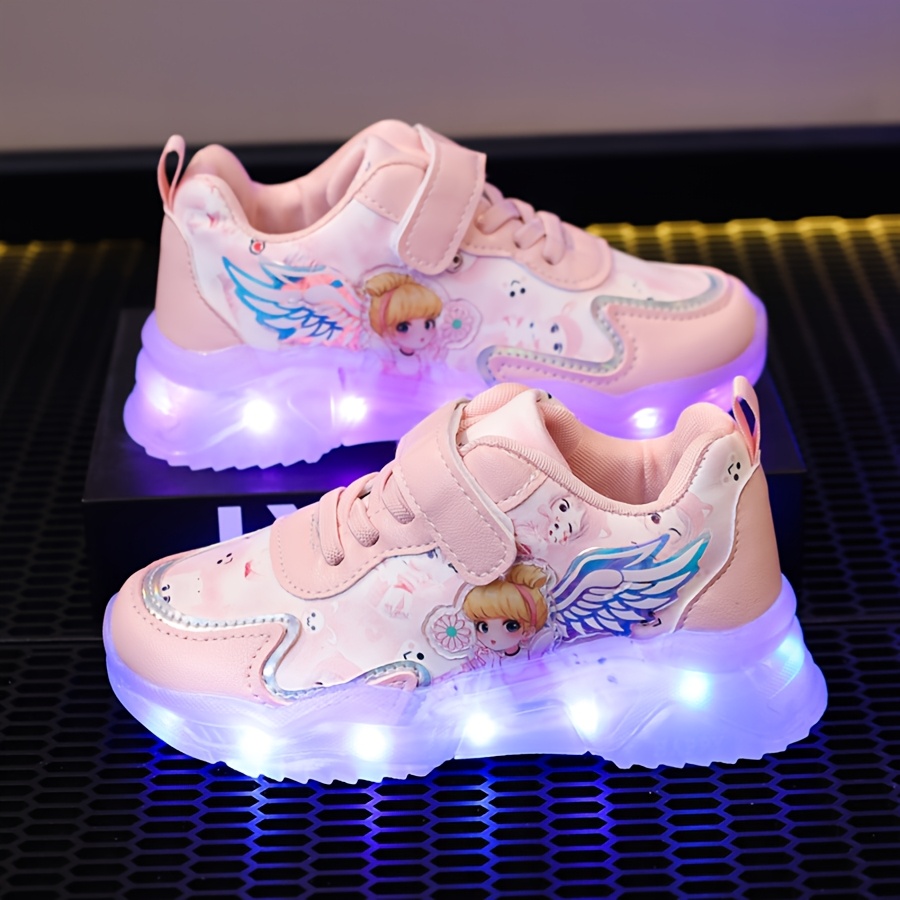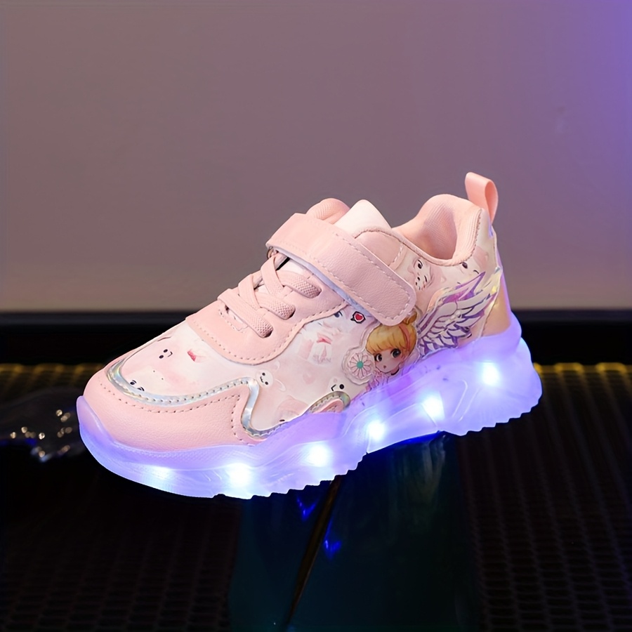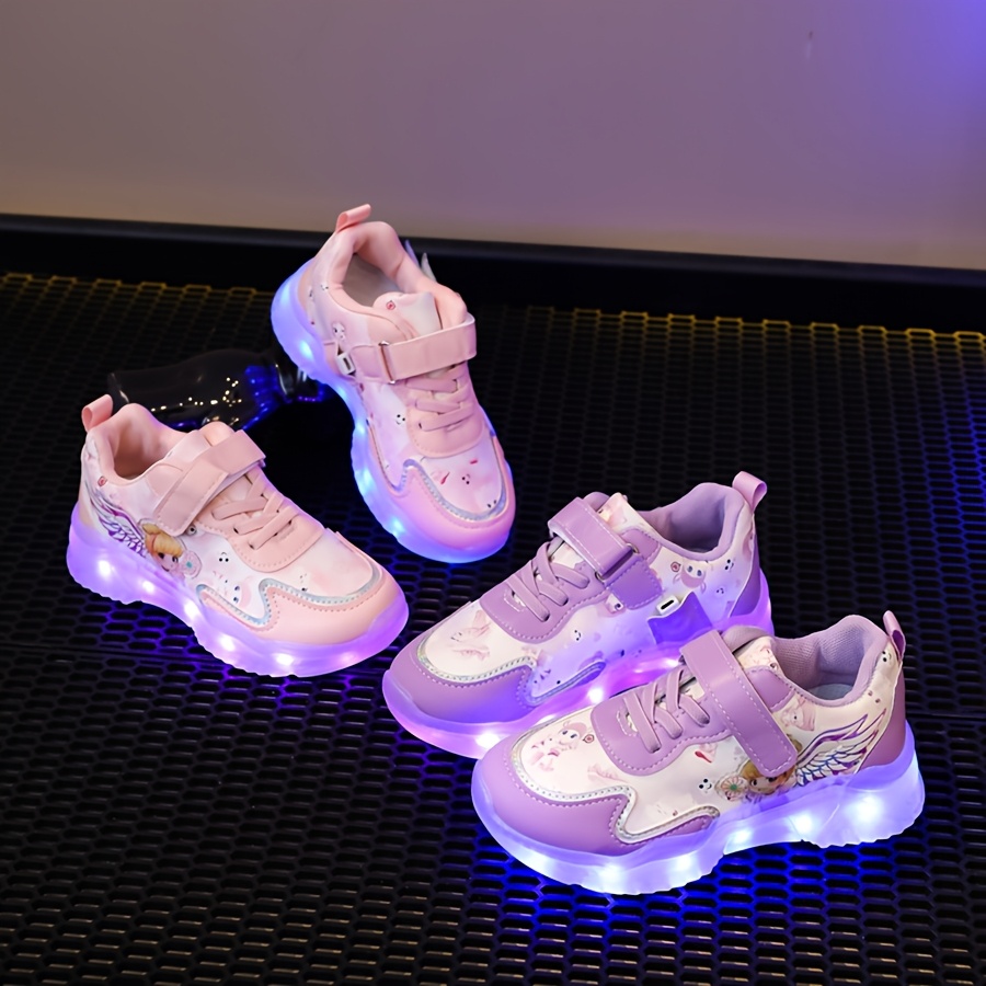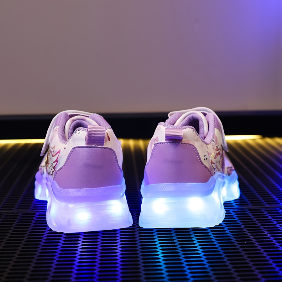 Girls & Glowing LED Sneakers with USB Charging, Low-Top Light-Up Shoes with Heart & Star Patterns, Pastel Pink/Clear Light Effects, Breathable PU Mesh & Cushioned TPR Sole for Nighttime Play,, - Magical Glow-in-the-Dark Shoes