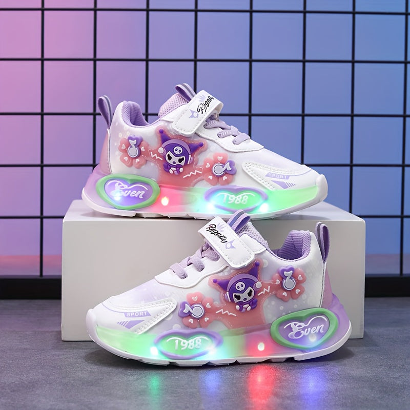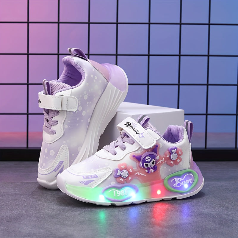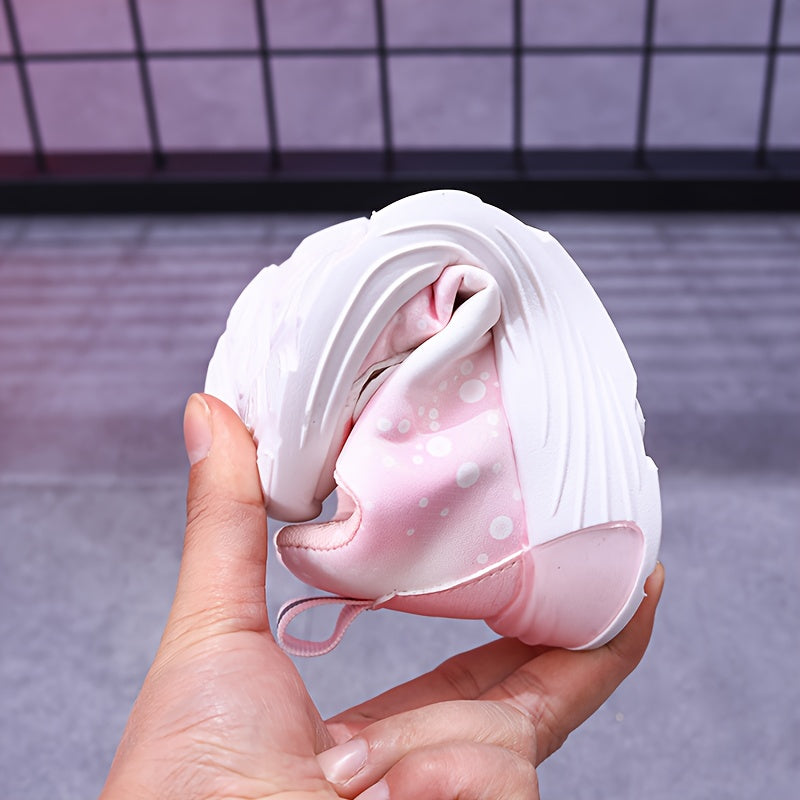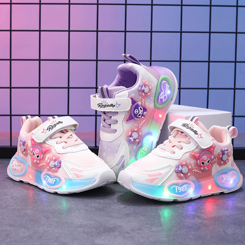 Girls' Glowing Lights Shoes with -Free Heel Strap - Sparkling Princess Sneakers, Cute Bear & Pink Bow Design, Low-Top Lace-Like Closure (No Laces), PU/PVC/ Sole for 1-6 Years - All-Season Running & Party Shoes, Cheer Shoes, C