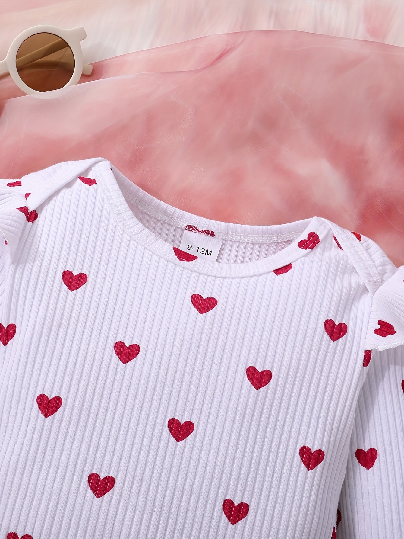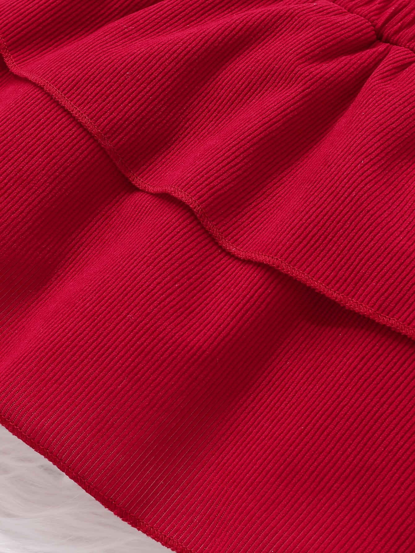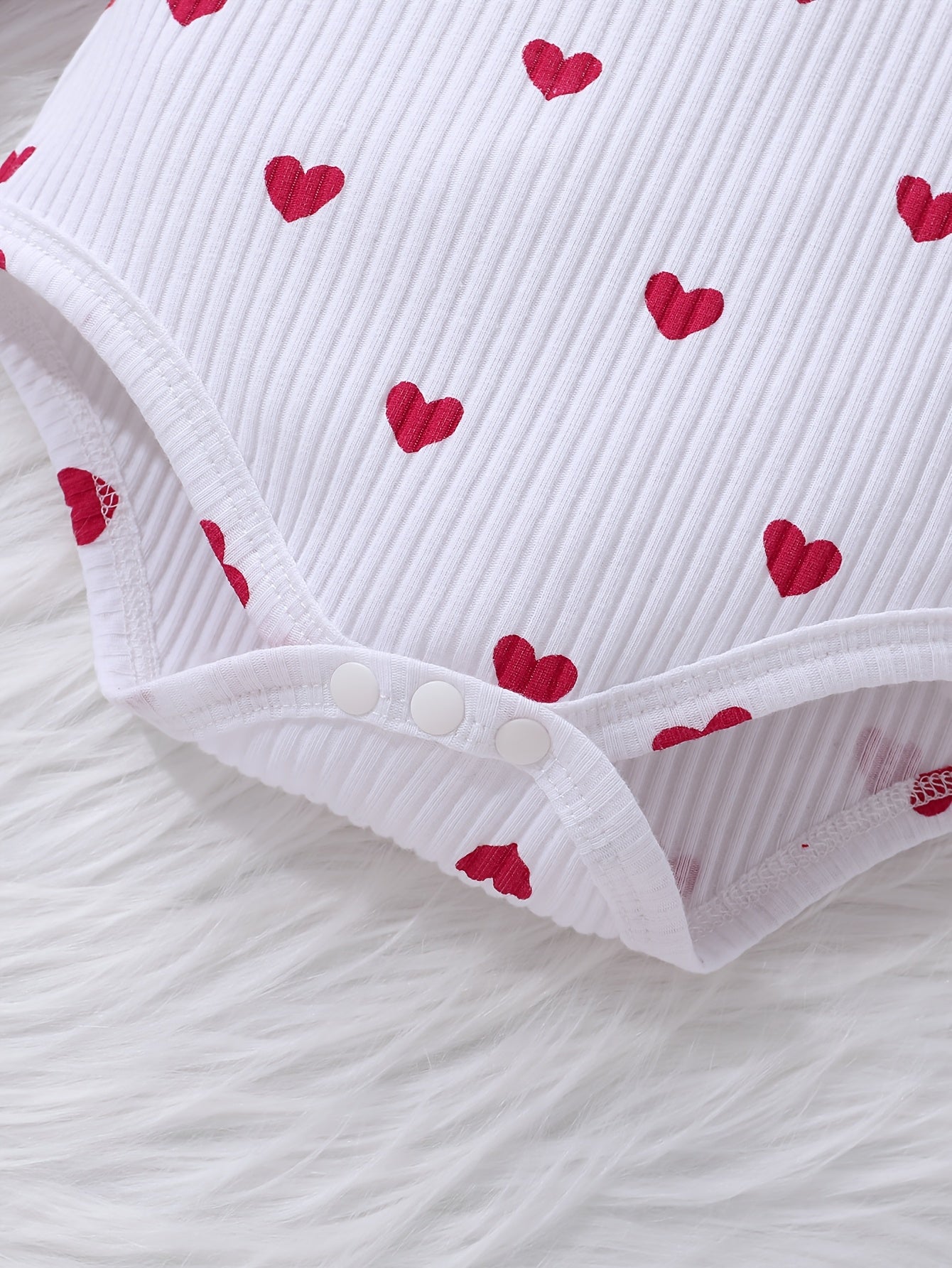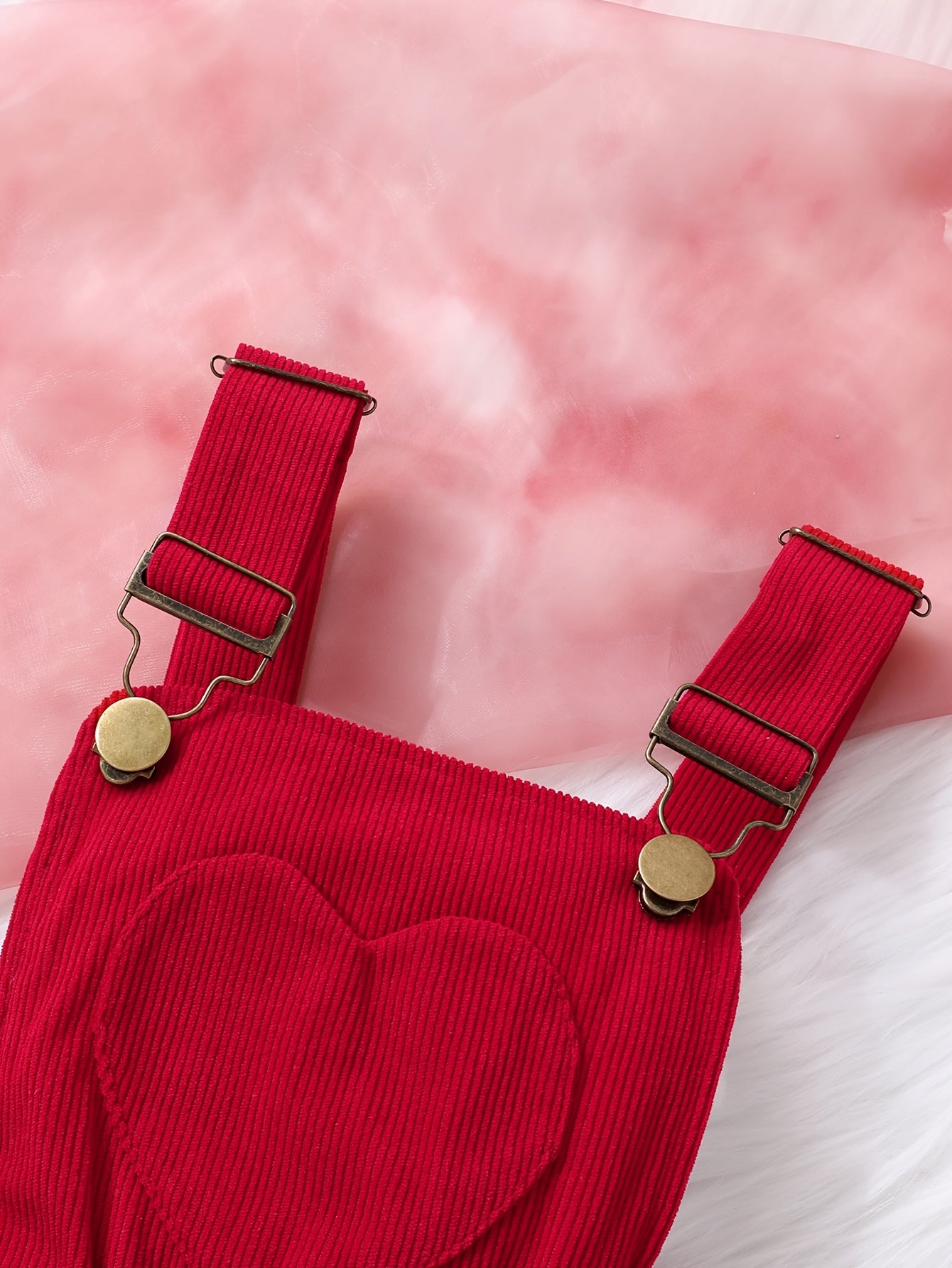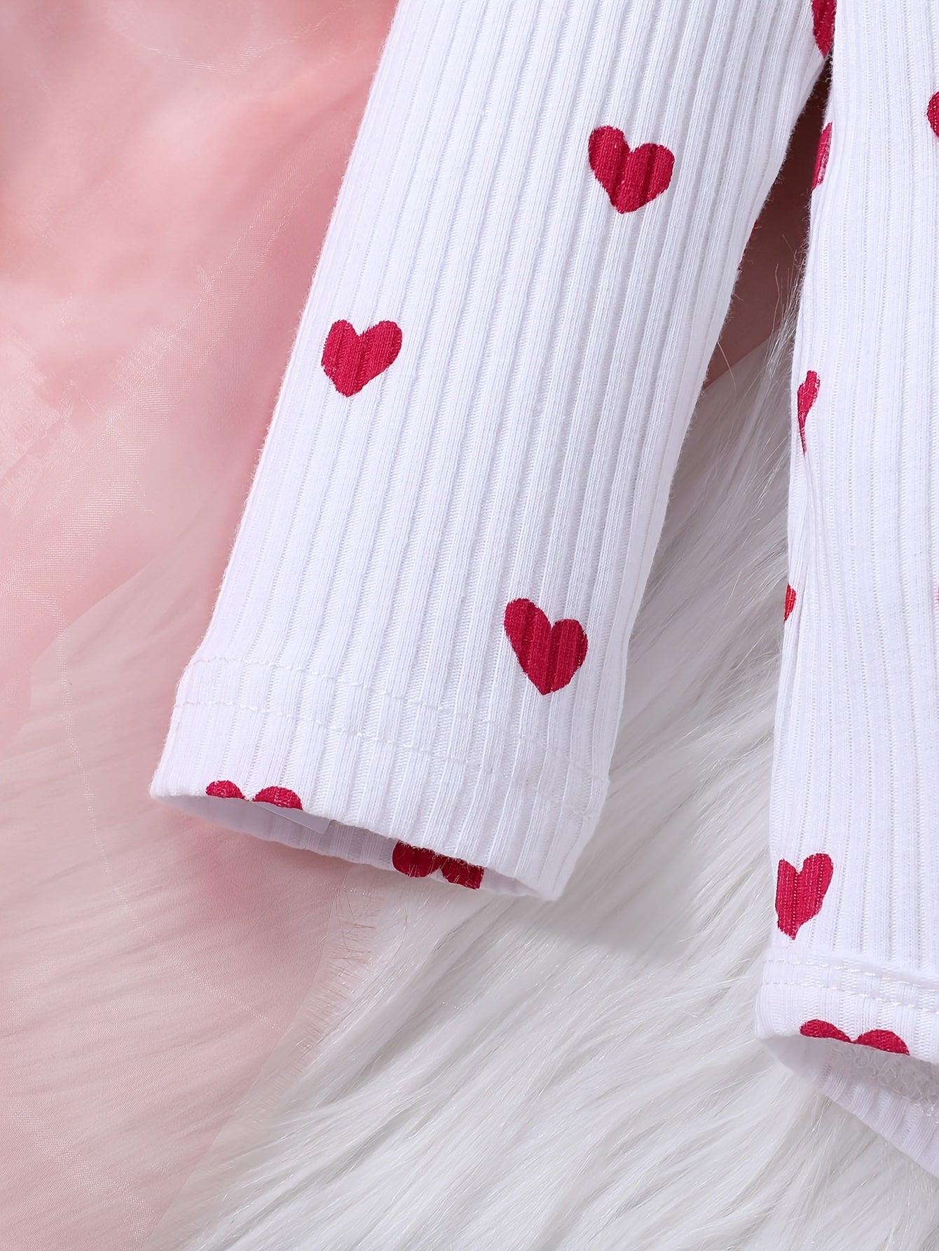 Girls' Love Print Ruffle Sleeve Top Double Skirt Overalls with Bow Headband Three-Piece Set, for Outdoor