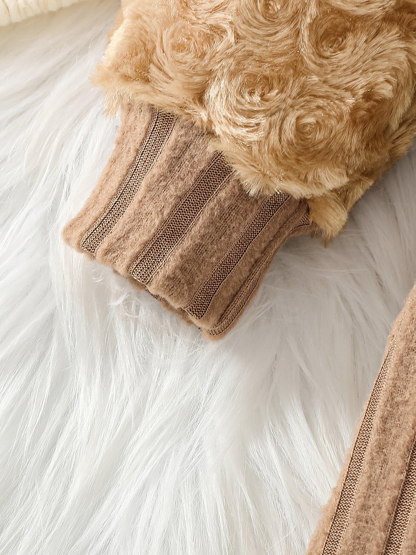 Girl's Round Neck Long Sleeve Dress with Rose Bud Pattern Fuzzy Sleeves and Bag, Suitable for Spring and Autumn Outdoor Casual Wear