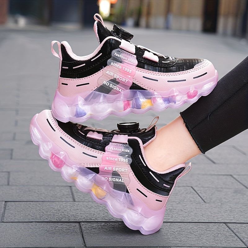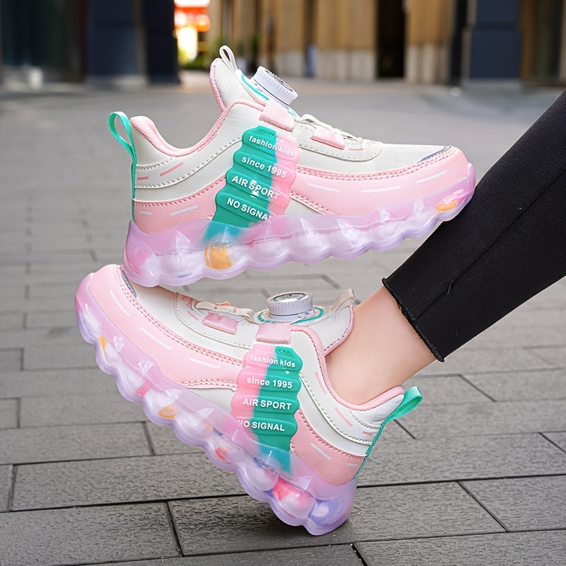 Kids' Preppy Sports Sneakers with Rotating Buckle, Lightweight EVA Sole, Non-Slip PU Upper, Comfortable Fabric Lining, Alphabet Pattern, All-Season Casual Footwear for Outdoor Activities, Training, Hiking - Ideal for Valentin