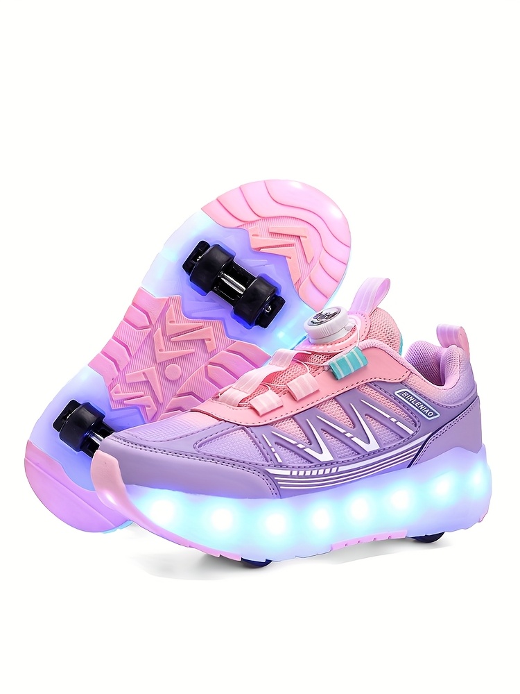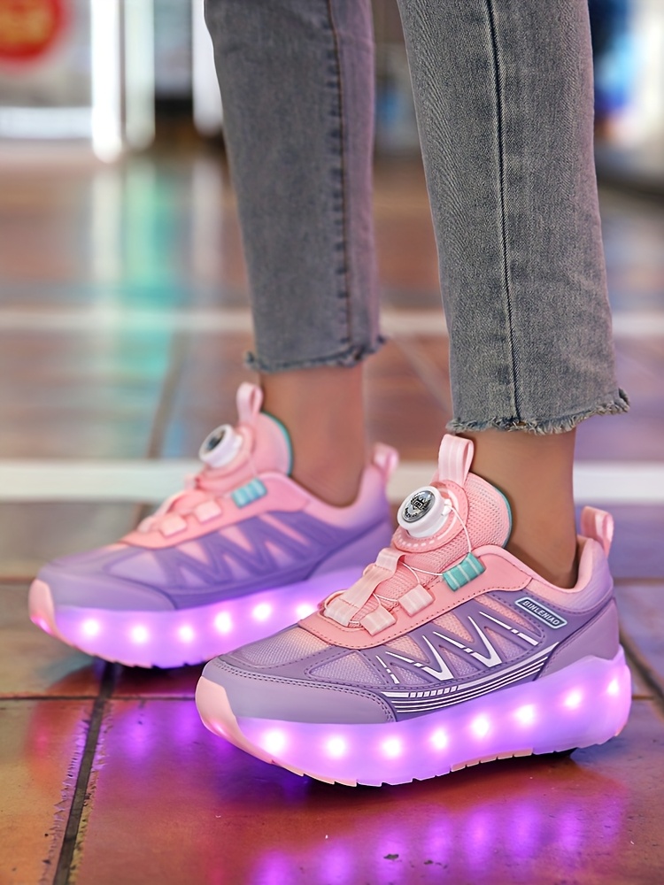 LED Light-Up Girls' Roller Skates with Rotating Brightness & Detachable Wheels - USB Rechargeable Low-Top Sneakers, Adjustable Straps, TPR Sole for All-Season Casual Sports & Rollerblading, Shoes for Girls, Sleek Shoe Design,