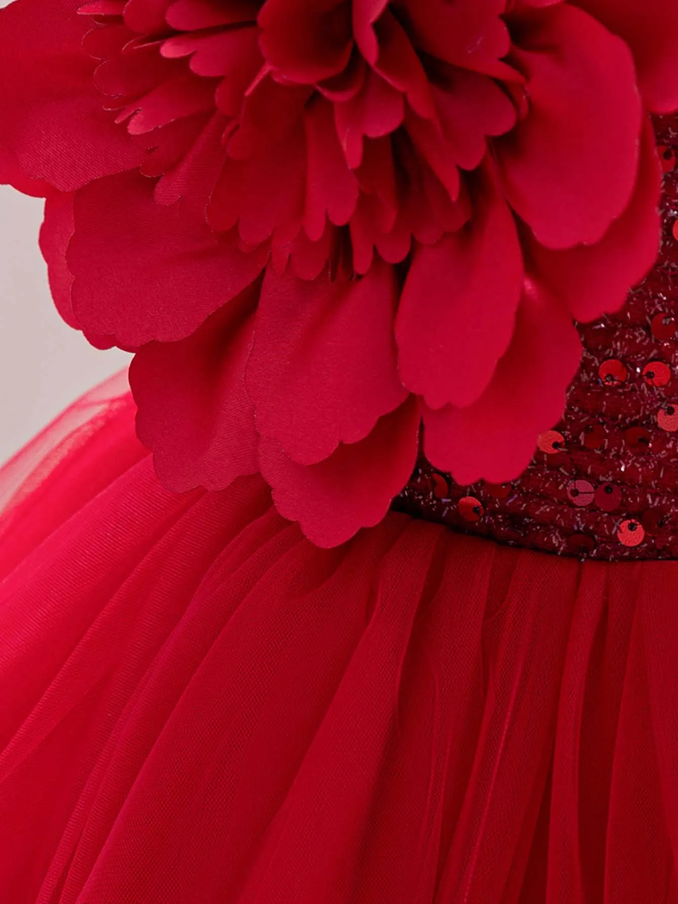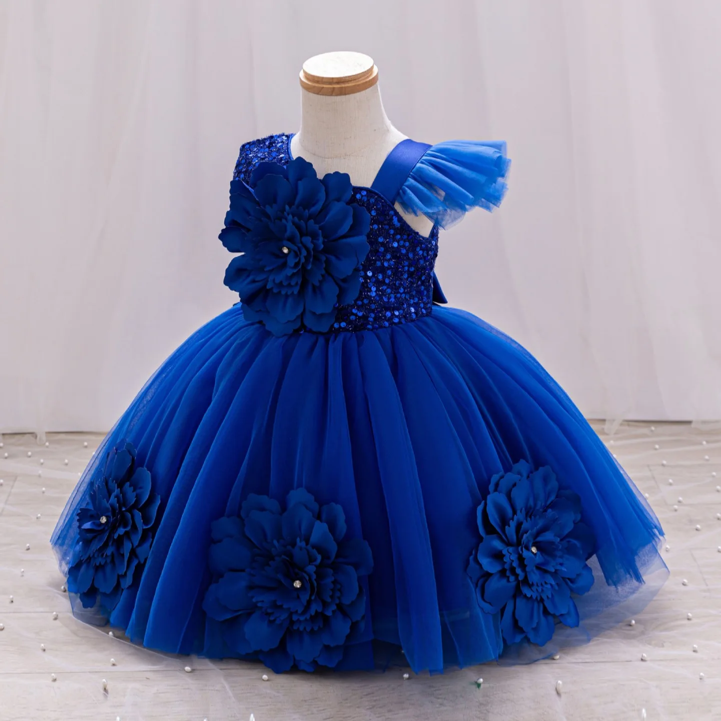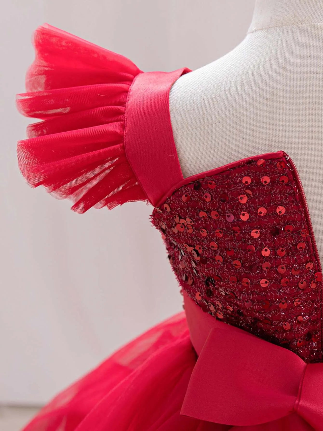 New Red Single Shoulder Sparkling Flying Sleeve Baby's Birthday Party Dress 0-6 Year Old Girl Pageant Dresses for Toddler Girls