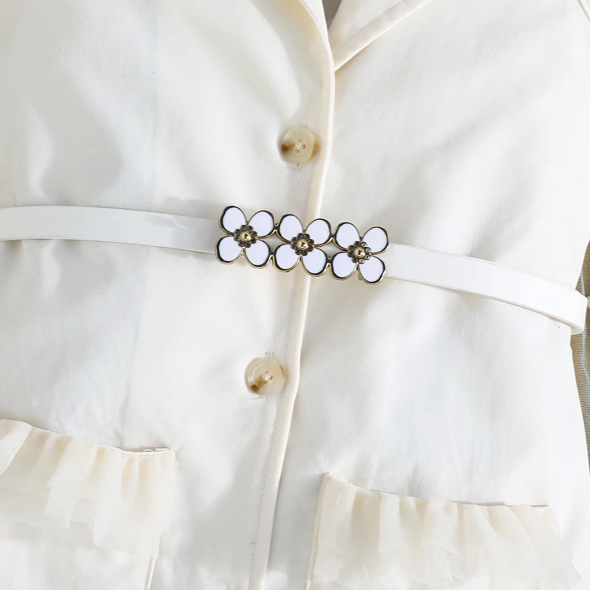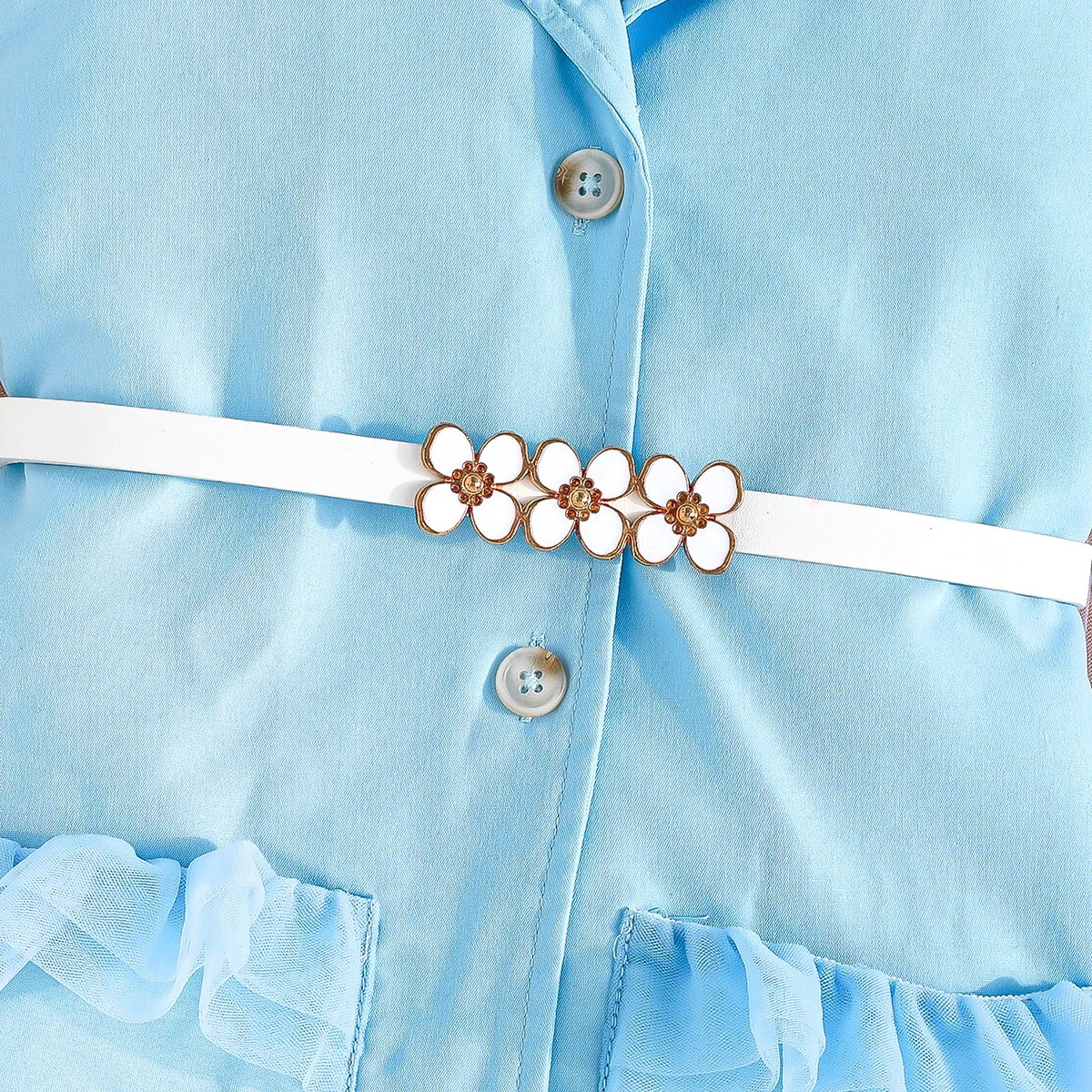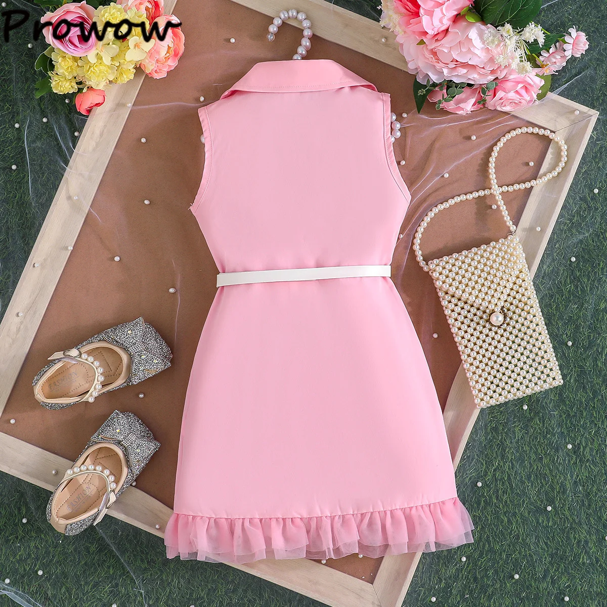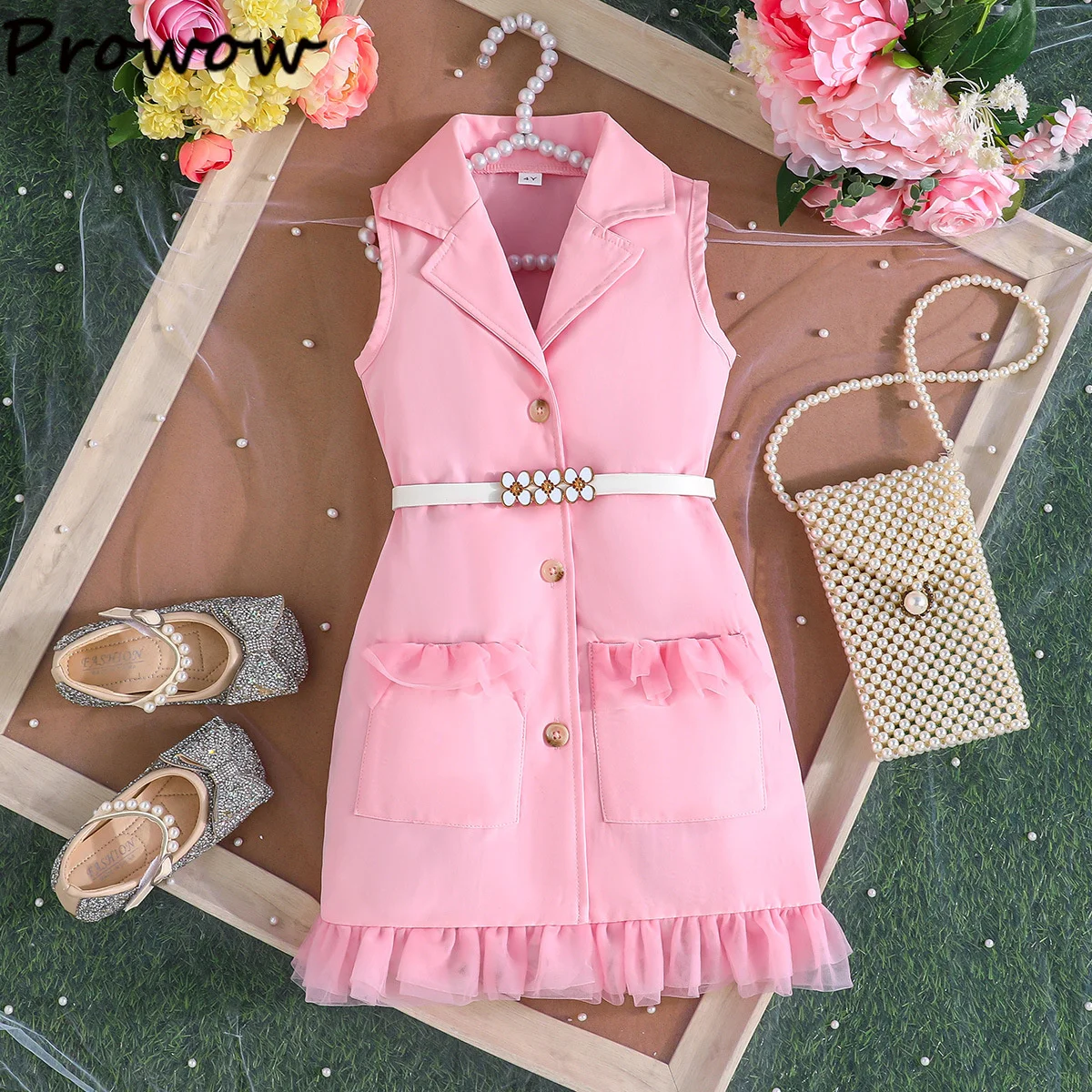 Prowow Girl's Blazer Dresses Sleeveless Lapel Fashion Lace Dress For Kids With Belt 2pcs Children Clothes 3 To 8 Years Old